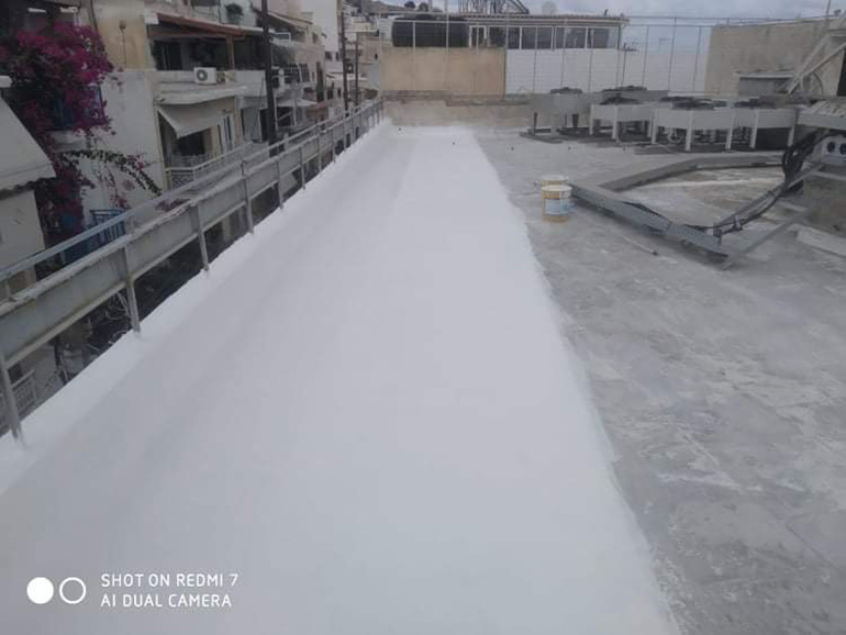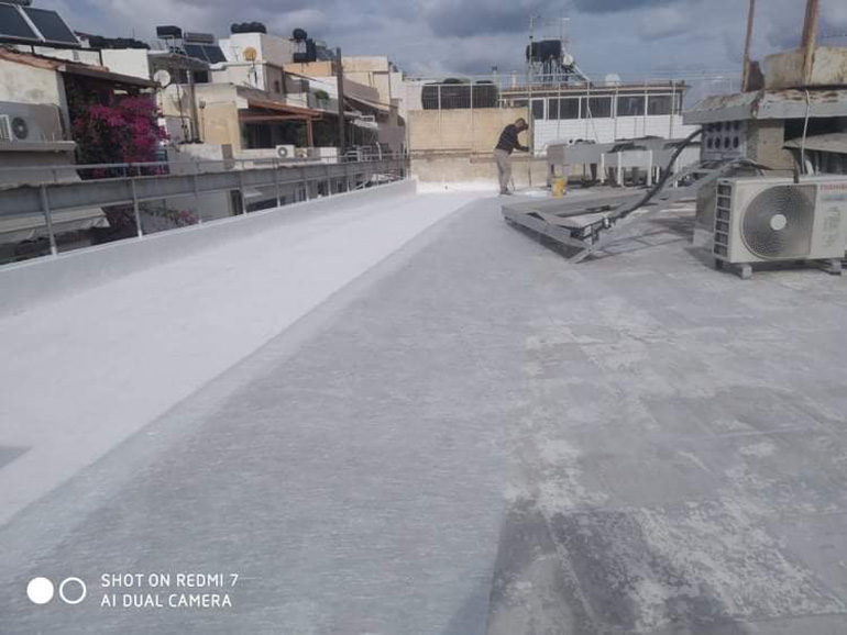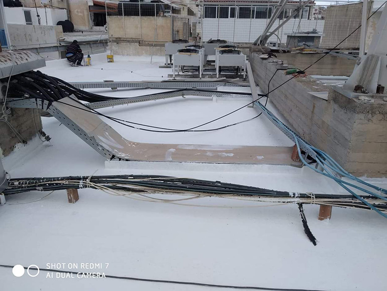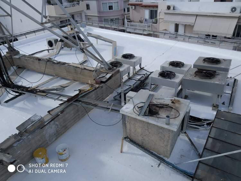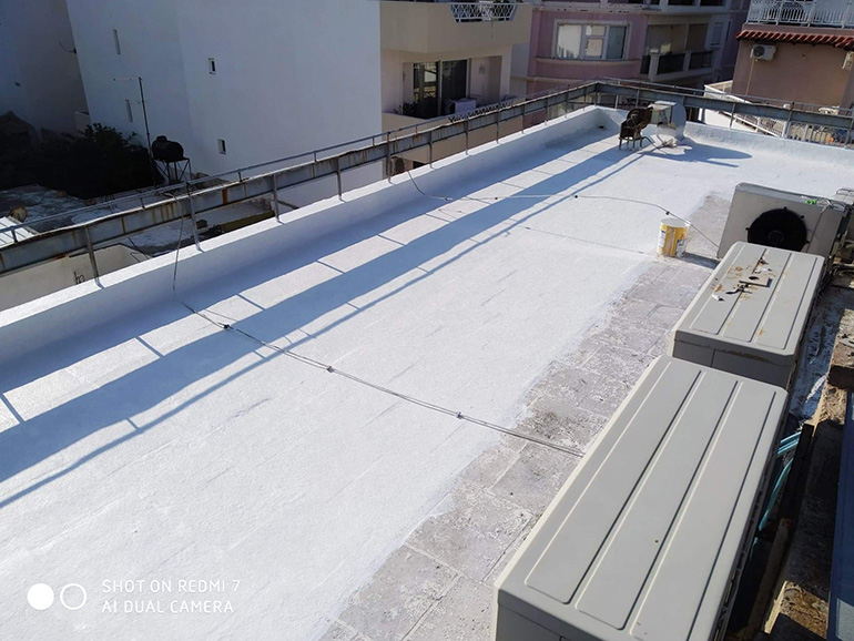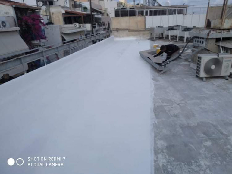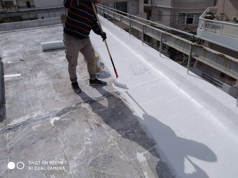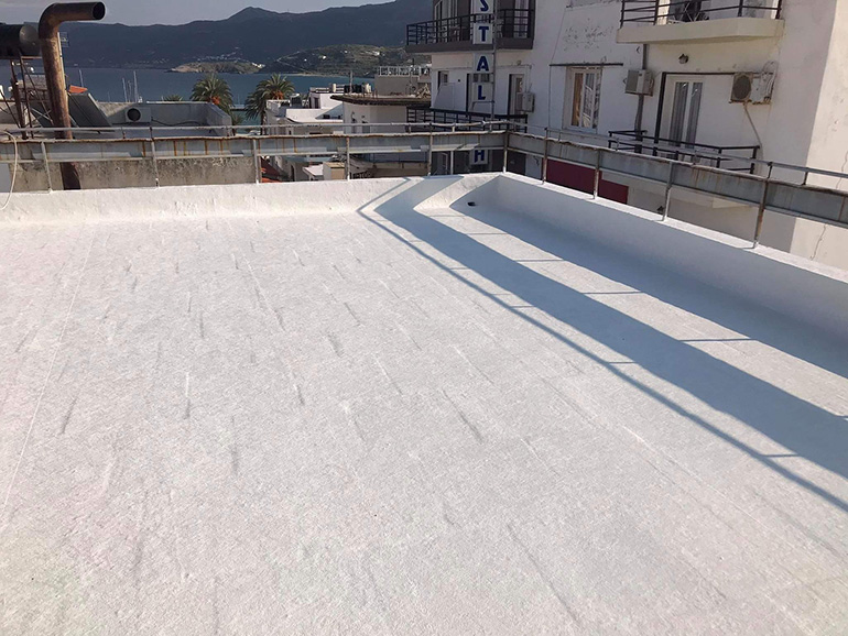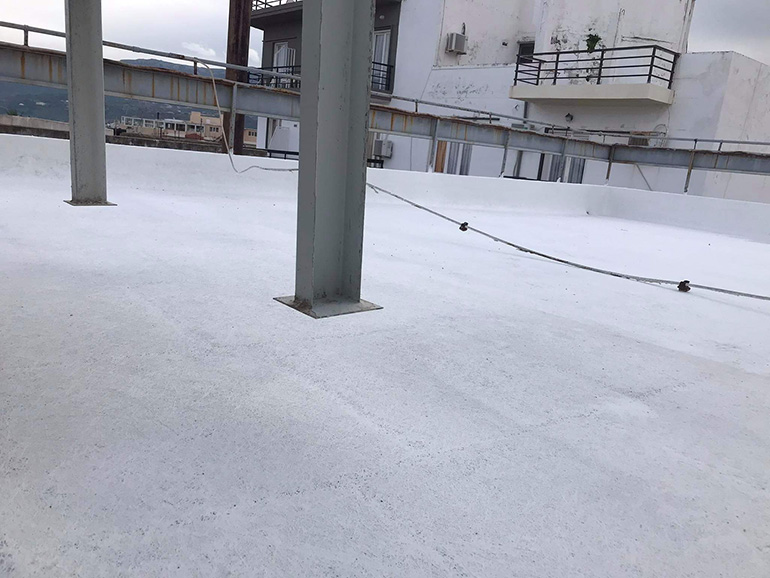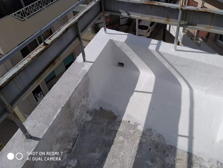 Στεγανωση με υγρη πολυουρεθανικη μεμβρανη SIKALASTIC 612 οπλισμενη με πολυεστερα τυπου REEMAT. 500m2